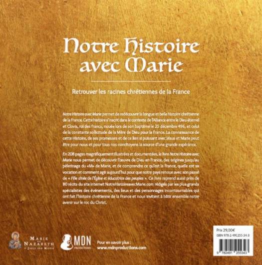 Notre histoire avec Marie permet de redécouvrir la longue et belle histoire mariale de la France qui commence avec Clovis. 50 récits magnifiquement illustrés assemblés par les meilleurs spécialistes des apparitions et de l'histoire française.