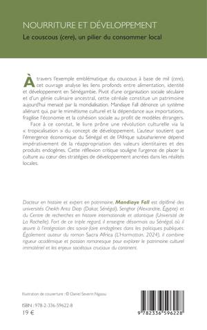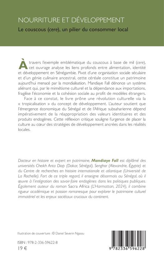 À travers l'exemple emblématique du couscous à base de mil (cere), cet ouvrage analyse les liens profonds entre alimentation, identité et développement en Sénégambie. Pivot d'une organisation sociale séculaire et d'un génie culinaire ancestral, cette céréale constitue un patrimoine aujourd'hui menacé par la mondialisation. Mandiaye Fall dénonce un système aliénant qui, par le mimétisme culturel et la dépendance aux importations, fragilise l'économie et la cohésion sociale au profit de modèles étrangers. Face à ce constat, le livre prône une révolution culturelle via la tropicalisation du concept de développement. L'auteur soutient que l'émergence économique du Sénégal et de l'Afrique subsaharienne dépend impérativement de la réappropriation des valeurs identitaires et des produits endogènes. Cette réflexion critique souligne l'urgence de placer la culture au coeur des stratégies de développement ancrées dans les réalités locales.