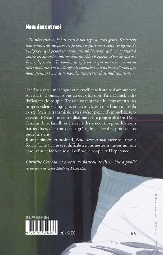 Roman sincère et profond, Nous deux et moi raconte l'amour fou, si facile à vivre et si difficile à transmettre, à travers un récit émouvant et fantasque qui célèbre le couple et l'Espérance.