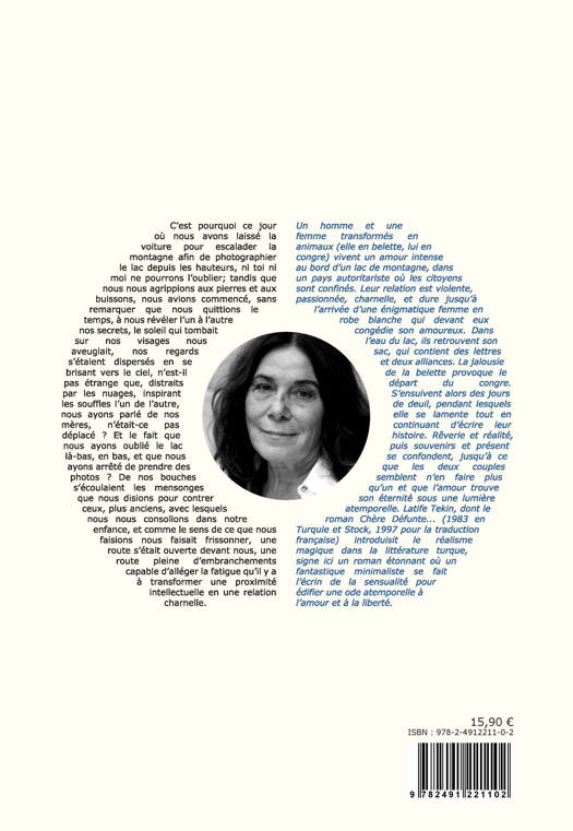 Un homme et une femme transformés en animaux (elle en belette, lui en congre) vivent un amour intense au bord d’un lac de montagne, dans un pays autoritariste où les citoyens sont confinés. Leur relation est violente, passionnée, charnelle, et dure jusqu’à l’arrivée d’une énigmatique femme en robe blanche qui devant eux congédie son amoureux. Dans l’eau du lac, ils retrouvent son sac, qui contient des lettres et deux alliances. La jalousie de la belette provoque le départ du congre. S’ensuivent alors des jours de deuil, pendant lesquels elle se lamente tout en continuant d’écrire leur histoire. Rêverie et réalité, puis souvenirs et présent se confondent, jusqu’à ce que les deux couples semblent n’en faire plus qu’un et que l’amour trouve son éternité sous une lumière atemporelle.<br /><br /> Latife Tekin, dont le roman Chère Défunte... (1983 en Turquie et Stock, 1997 pour la traduction française) introduisit le réalisme magique dans la littérature turque, signe ici un roman étonnant où un fantastique minimaliste se fait l’écrin de la sensualité pour édifier une ode atemporelle à l’amour et à la liberté.