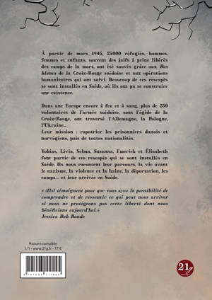 L'album regroupe les témoignages dessinés de six personnes qui ont survécu à l'Holocauste en se réfugiant en Suède, pays neutre pendant la Seconde Guerre Mondiale. Certains de ceux qui étaient enfants à cette époque sont encore en vie raconte à la première personne ce qui leur est arrivé et ce qu'ils ont ressenti. Ils parlent de la faim, de la mort, des familles déchirées, de leur première rencontre avec leur pays d'accueil et de la façon dont ils ont réussi à continuer à vivre et à survivre, malgé tout. Le médium BD rend le livre facilement accessible, malgré le sujet difficile. C'est un album qui permet d'ouvrir, avec une dose d'optimisme, la discussion sur des sujets douloureux: les réfugiés, la guerre, l'antisémitisme, la xénophobie, la Shoah. Il est accessible (et recommandé) aux jeunes à partir de 11 ans environ.