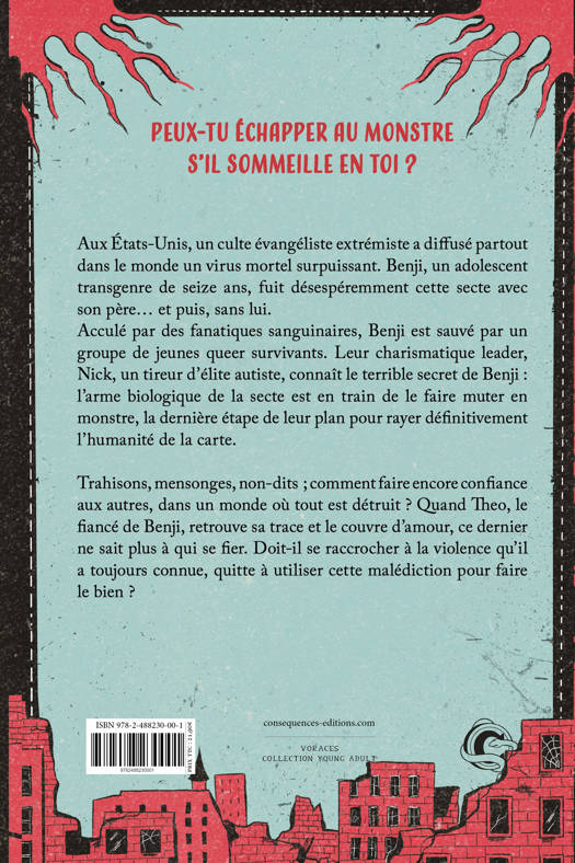 Aux États-Unis, un culte évangéliste extrémiste a diffusé partout dans le monde un virus mortel surpuissant. Benji, un adolescent transgenre de seize ans, fuit désespérémment cette secte avec son père… et puis, sans lui. Acculé par des fanatiques sanguinaires, Benji est sauvé par un groupe de jeunes queer survivants. Leur charismatique leader, Nick, un tireur d’élite autiste, connaît le terrible secret de Benji : l'arme biologique de la secte est en train de le faire muter en monstre, la dernière étape de leur plan pour rayer définitivement l’humanité de la carte.
