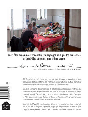 Ce livre témoigne de rencontres et d’histoires contées dans l’intimité du domicile ou lors de promenades en forêt. Il dit aussi le sens d’un projet partagé entre le Centre intercommunal d’action sociale du pays d’Albret et le Pôle de compétences Culture et Santé en Aquitaine. Un projet riche des contributions de nombreux acteurs du territoire.