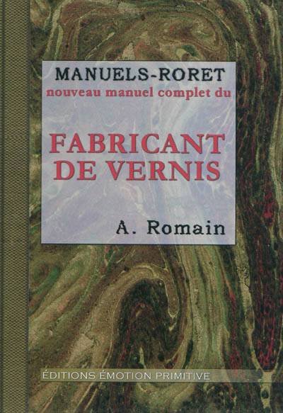 Ces pages sont la réédition intégrale du livre de A. Romain publié par l’encyclopédie Roret en 1908 à Paris sous le titre complet : Nouveau manuel complet du fabricant de vernis de toute espèce comprenant une étude générale raisonnée des matières entrant dans la préparation des vernis ; la fabrication et la composition des vernis à l’éther, à l’alcool, aux essences, des vernis gras, des vernis au caoutchouc, au goudron, etc.