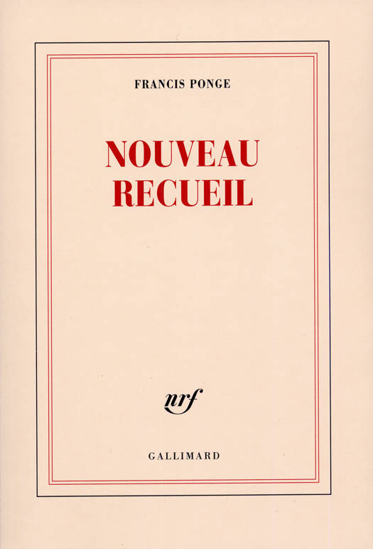 On pourra lire dans ce volume, présentés cette fois dans l'ordre chronologique de leur composition, tous les nouveaux écrits de l'auteur depuis 1959, c'est-à-dire depuis la mise en fabrication de son ouvrage Le Grand Recueil. Ceci à une exception près, celle du Savon, paru voici quelques mois - et naturellement des pages auxquelles il travaille encore. On y trouvera, en particulier, deux grands textes "poétiques", L'Asparagus et Le Pré, qui marquent une nouvelle évolution dans la manière de l'auteur, ainsi que de nouveaux et importants textes sur la peinture (Braque, Picasso, Fautrier, Chardin et La Nature morte, etc.). Dans une première partie ont été rassemblés un certain nombre de textes, datés de 1921 à 1958, qui, pour des raisons diverses, n'avaient pu figurer dans aucun des livres publiés par nous sous la même signature. Une longue suite de notes sur Giacometti, que le célèbre artiste devait illustrer - mais la mort l'empêcha de réaliser ce projet - figure notamment dans cette première partie.