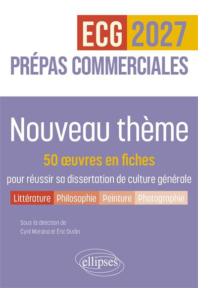 Aux concours d’entrée des grandes écoles de commerce, les candidats doivent rédiger une dissertation sur un thème imposé qui n’est ni une dissertation littéraire ni une dissertation philosophique mais une dissertation de culture générale . Pour ce faire, ils sont invités à puiser dans une culture littéraire et philosophique se rapportant au thème, acquise au cours de l’année. Mais a fin de singulariser leur copie , ils peuvent faire appel à leur culture cinématographique, musicale, artistique, scientifique, politique. Cet ouvrage en fiches a précisément pour objectif de seconder les candidats dans cette tâche exigeante et d’analyser le thème au programme à travers : Des œuvres littéraires Des œuvres philosophiques Des œuvres artistiques Des œuvres cinématographiques Pour aller plus loin et savoir comment réinvestir ce contenu, l’ouvrage propose également des s ujets de dissertation corrigés à partir d’exemples tirés de ces fiches.