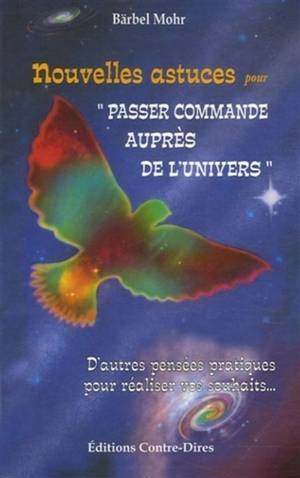 D'après Bärbel Mohr, le succès de nos souhaits dépend essentiellement de notre attitude intérieure. Souvent, des modèles comportementaux et des empreintes issues de la prime enfance entraînent des " commandes permanentes inconscientes " qui apportent exactement l'inverse de ce que l'on souhaite. L'auteur offre ici des exercices ludiques qui aident à reconnaître et à surmonter les blocages intérieurs, établissant ainsi " une connexion permanente stable avec l'univers ". De plus, le livre présente des indications importantes à l'intention des " personnes avancées " qui commandent à l'Univers, une piste " bonus " pour les demandes d'argent ainsi que de nombreuses autres incitations pour éveiller en soi l'intelligence universelle. Un passage important du livre : " en ligne avec l'Univers " présente un exercice essentiel qui peut être effectué partout en quelques secondes. Un excellent complément au best-seller de Bârbel Mohr : Continent passer commande auprès de l'univers...