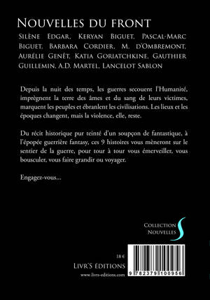Depuis la nuit des temps, les guerres secouent l’Humanité, imprègnent la terre des âmes et du sang de leurs victimes, marquent les peuples et ébranlent les civilisations. Les lieux et les époques changent, mais la violence, elle, reste. Du récit historique pur teinté d’un soupçon de fantastique, à l’épopée guerrière fantasy, ces 9 histoires vous mèneront sur le sentier de la guerre, pour tour à tour vous émerveiller, vous bousculer, vous faire grandir ou voyager. Engagez-vous...