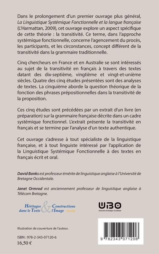 Dans le prolongement d'un premier ouvrage plus général, La linguistique Systémique Fonctionnelle et la langue française (L'Harmattan, 2009), cet ouvrage explore un aspect spécifique de cette théorie : la transitivité. Ce terme, dans l'approche systémique fonctionnelle, concerne l'agencement du procès, les participants, et les circonstances, concept différent de la transitivité dans la grammaire traditionnelle.