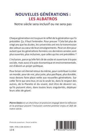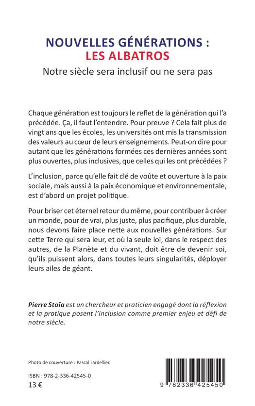 Chaque génération est toujours le reflet de la génération qui l'a précédée. Ça, il faut l'entendre. Pour preuve ? Cela fait plus de vingt ans que les écoles, les universités ont mis la transmission des valeurs au coeur de leurs enseignements. Peut-on dire pour autant que les générations formées ces dernières années sont plus ouvertes, plus inclusives, que celles qui les ont précédées ? L'inclusion, parce qu'elle fait clé de voûte et ouverture à la paix sociale, mais aussi à la paix économique et environnementale, est d'abord un projet politique. Pour briser cet éternel retour du même, pour contribuer à créer un monde, pour de vrai, plus juste, plus pacifique, plus durable, nous devons faire place nette aux nouvelles générations. Sur cette Terre qui sera leur, et où la seule loi, dans le respect des autres, de la Planète et du vivant, doit être de devenir soi, qu'ils puissent alors, dans toutes leurs singularités, déployer leurs ailes de géant.