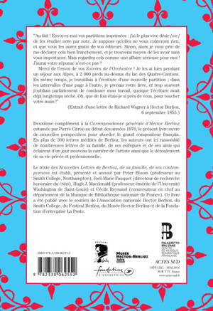 Suite et compléments des huit volumes de la «Correspondance générale» (publiés chez Flammarion, de 1972 à 2003, sous la direction de Pierre Citron), le présent ouvrage contient près de trois cents lettres inédites ou partiellement inédites de la plume du compositeur, de nombreuses lettres de sa famille, de ses collègues et de ses amis. Celles-ci éclairent ici d'un jour nouveau la carrière de Berlioz ainsi que le déroulement de sa vie privée et professionnelle.