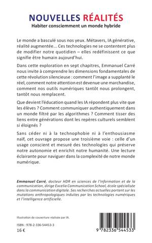 Le monde a basculé sous nos yeux. Métavers, IA générative, réalité augmentée... Ces technologies ne se contentent plus de modifier notre quotidien – elles redéfinissent ce que signifie être humain aujourd’hui. Dans cette exploration en sept chapitres, Emmanuel Carré nous invite à comprendre les dimensions fondamentales de cette révolution silencieuse : comment l’image a supplanté le réel, comment notre attention est devenue une marchandise, comment nos outils numériques tantôt nous prolongent, tantôt nous remplacent. Que devient l’éducation quand les IA répondent plus vite que les élèves ? Comment communiquer authentiquement dans un monde filtré par les algorithmes ? Comment tisser des liens entre générations dont les repères culturels semblent si éloignés ? Sans céder ni à la technophobie ni à l’enthousiasme naïf, cet ouvrage propose une troisième voie : celle d’un usage conscient et mesuré des technologies qui préserve notre autonomie et enrichit notre humanité. Une lecture éclairante pour naviguer dans la complexité de notre monde numérique.