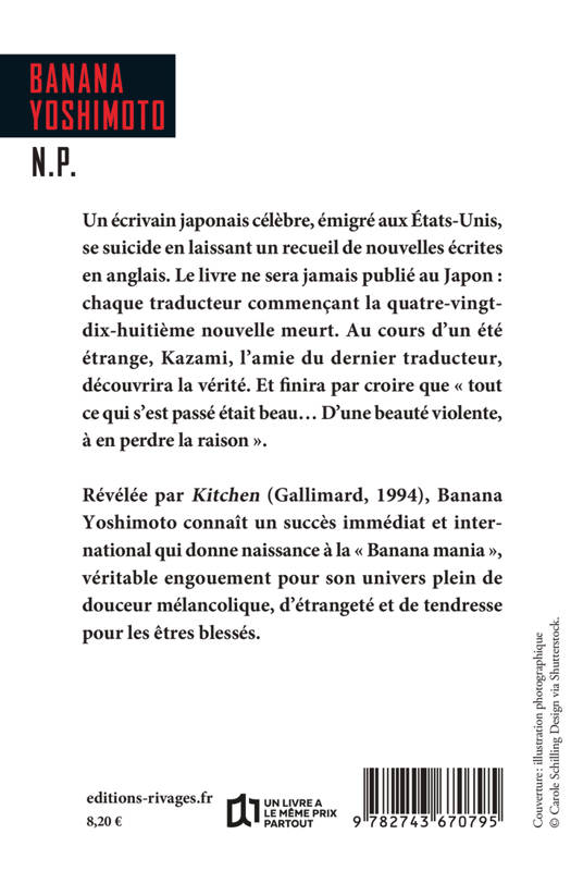 Voix emblématique de la littérature japonaise contemporaine, héritière de Kawabata et de Murakami, Banana Yoshimoto s'impose dès la parution de son premier roman, "Kitchen" (1988), écrit à vingt-quatre ans, qui lui vaut une renommée internationale et inaugure ce que la presse appellera la « Banana mania » : un engouement pour un univers fait de douceur mélancolique, d'étrangeté et de tendresse envers les âmes blessées. Avec "N.P.", elle approfondit ses thèmes fétiches : le deuil et la perte, les liens invisibles entre les êtres et les multiples formes de l'amour. Une autrice culte à redécouvrir.