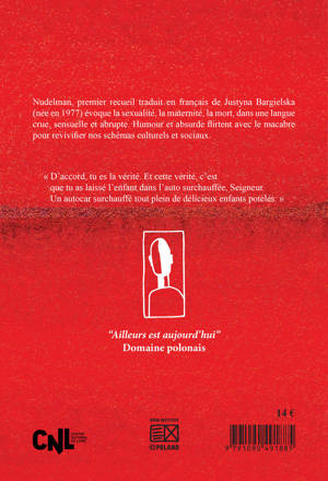 Nudelman, premier recueil à paraître en français de Justyna Bargielska frappe par sonlangage cru, sensuel, abrupt. Il renvoie à un univers où dominentl'absurde et l'humour, parfois macabre, pour évoquer la corporalité, notamment du point de vue féminin, que Bargielska montre sous ses aspects variés, la sexualité, la maternité ou la mort. L'auteur se meut avec virtuosité en effet entre le trauma, le réel, le rêve ou le cauchemar, la fantaisie-fiction, faisant référence au cinéma, à la bande dessinée, à la littérature de science-fiction, au conte pour enfants, au domaine du merveilleux, plutôt cruel, par le biais du sarcasme, de l'auto-ironie mêlée de tendresse, du macabre, du tragique et du paradoxe frappant pour modeler une réflexion inédite.