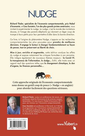 Mise à jour, enrichie et augmentée, cette édition analyse les effets du nudge et expose notamment les critiques formulées à son encontre. Elle intègre également de nouveaux thèmes majeurs : la Covid-19, la transparence de l’information, le sludge... Enfin, elle traite avec un regard neuf des questions telles que le changement climatique, le don d’organe, les finances personnelles…