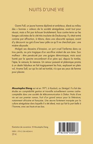 Garmi Fall, un jeune homme diplômé et ambitieux, élevé au milieu des bonnes valeurs de la société sénégalaise, avait tout pour réussir, mais a fini par échouer brutalement, face contre terre sur les berges calcinées de la cité très insulaire de Deukourap. Il y était entré comme par effraction, à tâtons, dans une obscurité opaque, avant d'y découvrir au gré d'une lueur pâle ce qu'il ne cherchait pas: une misère abyssale. Malgré ses desseins d'évasion, un sort cruel l'enferme dans ce trou perdu, au prix tragique d'un sacrifice violent de son âme. Son malheur: être persécuté par une guigne démoniaque, mais aussi hanté par le spectre encombrant d'un père qui, depuis la tombe, l'épie, le censure, le menace. Un amour puissant et platonique promis à un destin fabuleux en fait tragiquement les frais, explosant en plein vol. Arame Sall, sur qui le ciel est tombé, n'a que ses yeux de femme pour pleurer.