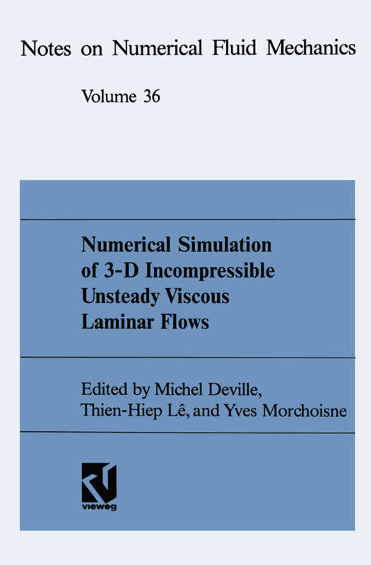 The GAMM-Commi ttee for Numerical Methods in Fluid Mechanics (GAMM-Fachausschuss für Numerische Methoden in der Strömungsmechanik) has sponsored the organization of a GAMM Workshop dedicated to the numerical simulation of three- dimensional incompressible unsteady viscous laminar flows to test Navier-Stokes solvers. The Workshop was held in Paris from June 12th to June 14th, 1991 at the Ecole Nationale Superieure des Arts et Metiers. Two test problems were set up. The first one is the flow in a driven-lid parallelepipedic cavity at Re = 3200 . The second problem is a flow around a prolate spheroid at incidence. These problems are challenging as fully transient solutions are expected to show up. The difficulties for meaningful calculations come from both space and temporal discretizations which have to be sufficiently accurate to resol ve detailed structures like Taylor-Görtler-like vortices and the appropriate time development. Several research teams from academia and industry tackled the tests using different formulations (veloci ty-pressure, vortici ty- velocity), different numerical methods (finite differences, finite volumes, finite elements), various solution algorithms (splitting, coupled, ... ), various solvers (direct, iterative, semi-iterative) with preconditioners or other numerical speed-up procedures. The results show some scatter and achieve different levels of efficiency. The Workshop was attended by about 25 scientists and drove much interaction between the participants. The contributions in these proceedings are presented in alphabetical order according to the first author, first for the cavi ty problem and then for the prolate spheroid problem. No definite conclusions about benchmark solutions can be drawn.