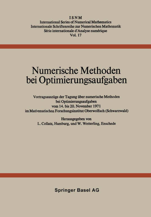 Vortragsauszüge Der Tagung Über Numerische Methoden Bei Optimierungsaufgaben Vom 14. Bis 20. November 1971 Im Mathematischen Forschungsinstitut Oberwolfach (Schwarzwald)