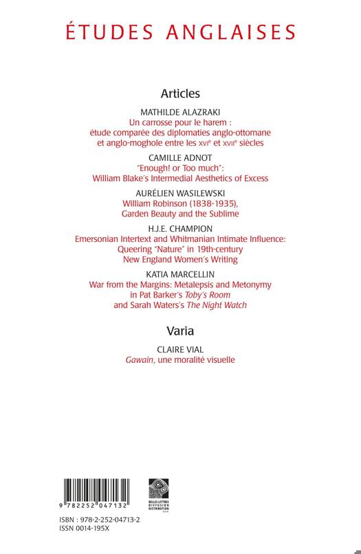 Etudes anglaises - N°4/2023 - Numéro spécial « jeunes chercheurs »