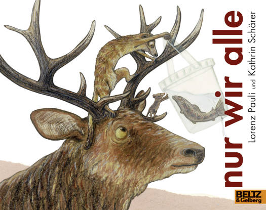 Vielleicht hätte die Zeit noch gereicht, um den Eimer fallen zu lassen und davonzurennen. Dann wäre die Geschichte anders verlaufen.Erst war jeder für sich allein. Und wenn das so geblieben wäre und Hirsch, Maus, Fisch, Elster, Erdmännchen und dann auch noch der Bär sich nicht begegnet wären, dann hätte jeder nur seine eigene, langweilige, kleine Geschichte.Aber weil jeder eine neue Idee hat und die anderen mitmachen, wird daraus eine Geschichte, die es in sich hat.
