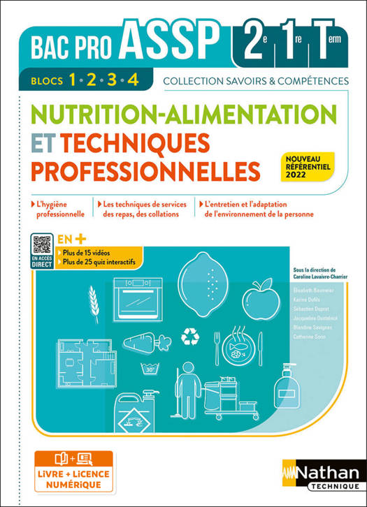 Cet ouvrage traite la Nutrition-Alimentation ainsi que les Techniques professionnelles relatives à l'entretien et l'adaptation de l'environnement de la personne, l'hygiène professionnelle, et le service des repas et collations.