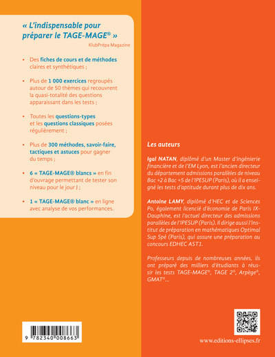 • 6 « TAGE-MAGE® blancs » en fin d’ouvrage permettant de tester son niveau pour le jour J ;
