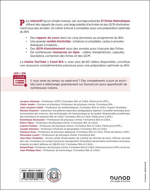 51 fiches thématiques offrant des rappels de cours, une large palette d’activités et des QCM d’entraînement issus des annales. Un cahier à lire et à compléter pour une préparation optimale du BIA.