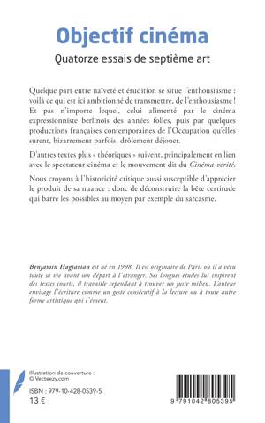 Quelque part entre naïveté et érudition se situe l’enthousiasme : voilà ce qui est ici ambitionné de transmettre, de l’enthousiasme ! Et pas n’importe lequel, celui alimenté par le cinéma expressionniste berlinois des années folles, puis par quelques productions françaises contemporaines de l’Occupation qu’elles surent, bizarrement parfois, drôlement déjouer. D’autres textes plus « théoriques » suivent, principalement en lien avec le spectateur-cinéma et le mouvement dit du Cinéma-vérité. Nous croyons à l’historicité critique aussi susceptible d’apprécier le produit de sa nuance : donc de déconstruire la bête certitude qui barre les possibles au moyen par exemple du sarcasme.