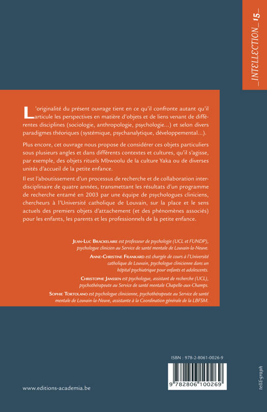 L'originalité du présent ouvrage tient en ce qu'il confronte autant qu'il articule les perspectives en matière d'objets et de liens venant de différentes disciplines (sociologie, anthropologie, psychologie ) et selon divers paradigmes théoriques (systémique, psychanalytique, développemental ). Plus encore, cet ouvrage nous propose de considérer ces objets particuliers sous plusieurs angles et dans différents contextes et cultures. Il est l'aboutissement d'un processus de recherche mené à l'UCL.
