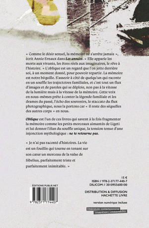 Oblique est l’un de ces livres qui savent à la fois fragmenter la mémoire comme les petits morceaux aimantés de Ligeti et lui donner l’élan du souffle unique, la tension tenue d’une injonction mythologique : ne te retourne pas.