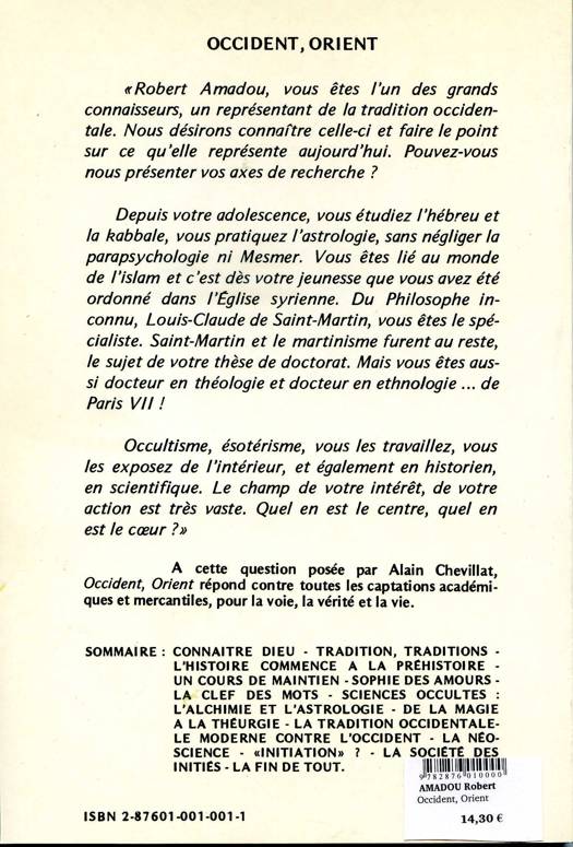 Sommaire: Connaître Dieu Tradition, traditions L'Histoire commence à la Préhistoire Un cours de maintien Sophie des amours La clef des mots Sciences occultes L'Alchimie et l'astrologie De la magie à la théurgie La tradition occidentale Le moderne contre l'occident La néo-science "Initiation"? La société des initiés La fin de tout.