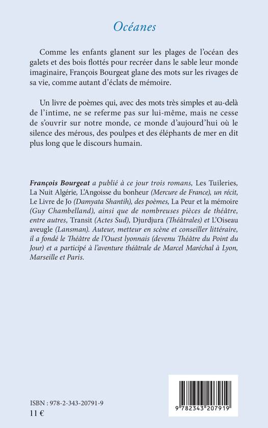 Comme les enfants glanent sur les plages de l'océan des galets et des bois flottés pour recréer dans le sable leur monde imaginaire, François Bourgeat glane des mots sur les rivages de sa vie, comme autant d'éclats de mémoire.Un livre de poèmes qui, avec des mots très simples et au-delà de l'intime, ne se referme pas sur lui-même, mais ne cesse de s'ouvrir sur notre monde, ce monde d'aujourd'hui où le silence des mérous, des poulpes et des éléphants de mer en dit plus long que le discours humain.