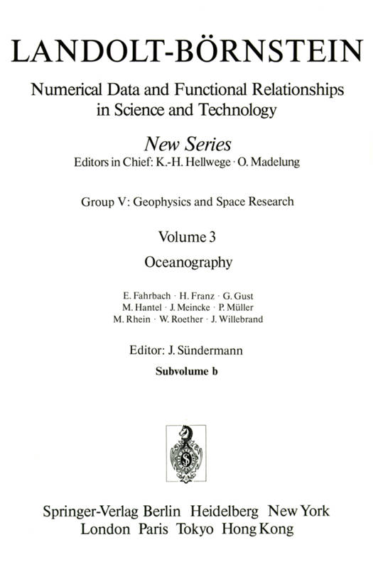 In the 6th edition of Landolt-Börnstein, the field of oceanography was incorporated into the volume on "Astronomy and Geophysics" (1952) and covered 116 pages. Since that time, the tremendous increase of knowledge and the growing significance of oceanography called for a new compilation which appears as Volume V/3 of the New Series. The topics dealt with in this volume belong to physical oceanography, a part of geophysics and physics. Two chapters on "Topography" and "Coastal Oceanography" represent peripheral areas, since they are more geographically oriented. On the other hand, they are very pertinent to the physics of the ocean. Due to the large amount of information covered, Volume V/3 is divided into three subvolumes with a total of some 1200 pages. Subvolumes a and c have already appeared. Subvolume a deals with the topography of the oceans, measuring techniques and instruments and the properties of sea water. Subvolume c contains chapters on ocean waves, upwelling regions, ice in the ocean and coastal oceanography. The present subvolume b covers the ocean circulation and the ocean turbulence.