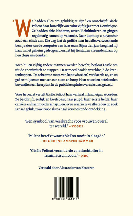 Voor het eerst vertelt Gisèle Pelicot haar verhaal in haar eigen woorden. Ze beschrijft, eerlijk en kwetsbaar, haar jeugd, haar eerste liefde, haar carrière en haar moederschap. Een leven waarin ze vastberaden op zoek is naar geluk, zowel voor als na haar verwoestende ontdekking.