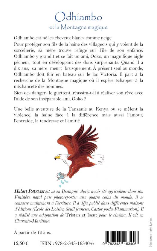 Odhiambo est né les cheveux blancs comme neige. Pour protéger son fils de la haine des villageois qui y voient de la sorcellerie, sa mère trouve refuge sur l'île de son enfance. Odhiambo y grandit et se fait un ami, Ooko, un magnifique aigle pêcheur, tout en développant des dons surprenants. Quand il a dix ans, sa mère meurt brusquement. À présent seul au monde, Odhiambo doit fuir en bateau sur le lac Victoria. Il part à la recherche de la Montagne magique où il espère échapper à la méchanceté des hommes. Une belle aventure de la Tanzanie au Kenya où se mêlent la violence, la haine face à la différence mais aussi l'amour, l'entraide, la tendresse et l'amitié.