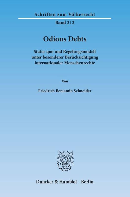 Staatsschulden, die entgegen den Interessen der Bevölkerung verwendet werden, werfen eine Vielzahl bisher ungelöster moralischer und rechtlicher Fragen auf. Gleichzeitig zeigen Ereignisse der Zeitgeschichte wie der Arabische Frühling, dass der Umgang mit den Schulden despotischer Regime unmittelbare Relevanz besitzt. Die vorliegende Arbeit bietet daher eine umfassende Untersuchung der Problematik der sog. Odious Debts aus völkerrechtlicher, insbesondere menschenrechtlicher, sowie privatrechtlicher Sicht. Ausgehend von der bis in das 17. Jahrhundert zurückreichenden Staatenpraxis, modernen Menschenrechtsverträgen und allgemeinen Rechtsgrundsätzen wird zunächst die Wirksamkeit odiöser Schulden untersucht. Sodann werden bestehende Lösungsmodelle analysiert. Angesichts der vielfältigen Probleme, die bei dem Umgang mit odiösen Schulden fortbestehen, wird ein menschenrechtsbasiertes Regelungsmodell erarbeitet, welches in Form eines Entwurfes für eine internationale Konvention die Arbeit abschließt.