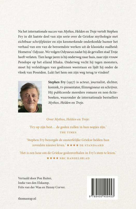 Na het internationale succes van Mythos, Helden en Troje vertelt Stephen Fry in dit laatste deel van zijn serie over de Griekse mythologie met zichtbaar schrijfplezier en zijn kenmerkende onderkoelde humor het verhaal van een van de beroemdste werken uit de klassieke oudheid: Homeros’ Odyssee. We volgen Odysseus nadat hij de gevallen stad Troje heeft verlaten. Tien lange jaren is hij onderweg naar huis, naar zijn vrouw Penelope op het eiland Ithaka. Onderweg vecht hij tegen monsters, moet hij verleidingen van godinnen weerstaan en lijdt hij onder de vloek van Poseidon. Lukt het hem om zijn weg terug te vinden?