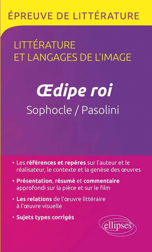 Cet ouvrage a été conçu pour donner aux élèves de Terminale L et aux professeurs une étude complète, précise et claire permettant de confronter la façon originale dont deux auteurs, Sophocle et Pier Paolo Pasolini, un dramaturge et un cinéaste, interprètent à vingt siècles de distance l’un des mythes les plus connus et les plus adaptés de la mythologie. Ce travail vise tout à la fois la constitution d’une culture personnelle ouverte et la réussite à l’épreuve du baccalauréat.