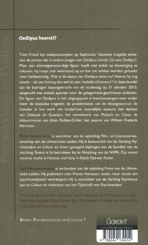 Toen Freud zijn oedipuscomplex op Sophocles’ klassieke tragedie entte, was de portee dat in iedere jongen een Oedipus schuilt (‘je suis Oedipe’). Maar een alomtegenwoordige figuur hoeft niet enkel op bevestiging te rekenen; hij roept ook weerstand op en kan tot vehikel worden gemaakt voor herbezinning. Wat is de status van Oedipus anno nu? Heerst hij nog steeds – als een koning dan wel als een ‘maladie (d’amour)’? In deze bundel zijn de bijdragen bijeengebracht van de studiedag op 31 oktober 2015, aangevuld met enkele speciaal voor de gelegenheid geschreven artikelen. De figuur van Oedipus is het uitgangspunt in beschouwingen over onder meer de klassieke tragedie; de problematiek van de dwangneurose; de moeder in het werk van kinderloze mannelijke auteurs; het denken van Deleuze en Guattari; het toneelwerk van Mulisch en Claus; de debuutroman van Alain Robbe-Grillet; het oeuvre van Willem Frederik Hermans.
