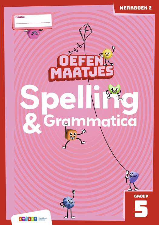 Met dit tweede Oefenmaatje Spelling & Grammatica voor groep 5 oefenen kinderen verder met spelling en grammatica. Ze oefenen hierin onder andere met de spelling van: -klankgroepwoorden -woorden met -ch en -cht -eind d en t -woorden met ou en au -woorden eindigend op -enen -woorden met stomme /e/ -verkleinwoorden -woorden met achtervoegsels -ig en -lijk -woorden met i die wordt uitgesproken als /ie/ -leenwoorden