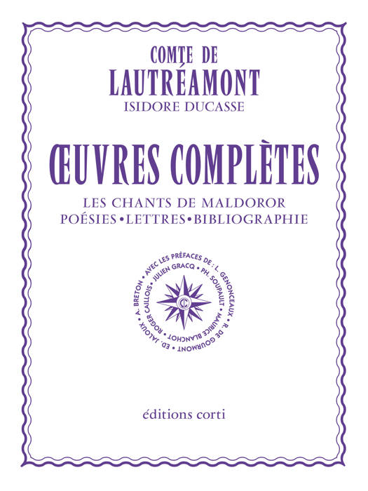 Les Œuvres complètes de Lautréamont (Les Chants de Maldoror, Poésies et Lettres), après l’édition historique de 1938, comprend une abondante bibliographie et les préfaces de leurs éditions successives, signées Genouceaux, de Gourmont, Jaloux, Breton, Soupault, Gracq, Caillois et Blanchot.