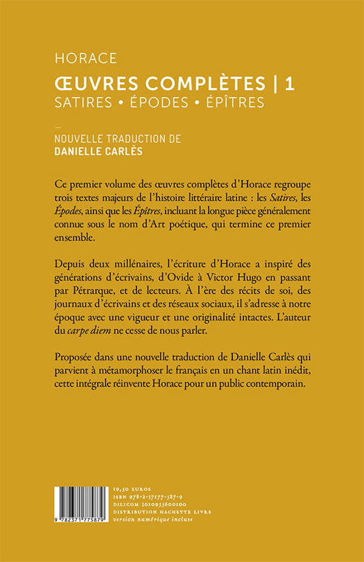 Depuis deux millénaires, l’écriture d’Horace a inspiré des générations d’écrivains, d’Ovide à Victor Hugo en passant par Pétrarque, et de lecteurs. À l’ère des récits de soi, des journaux d’écrivains et des réseaux sociaux, il s’adresse à notre époque avec une vigueur et une originalité intactes. L’auteur du carpe diem ne cesse de nous parler.