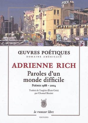 Sélection de poèmes d'Adrienne Rich, jamais traduite en France. Une voix lyrique familière, intime, une voix de femme américaine, porteuse de tradition, une voix whitmanienne, transcendantaliste, et gauchissant cette tradition pour l'élargir. Il y a chez Adrienne Rich une adhérence à la vie. Engagée dans les conflits et la lutte qui se mènent pour aller de l'inconscient au dicible, puis à l'action. Sa poésie, dit-elle, est « une longue conversation avec les aînés et avec le futur ».