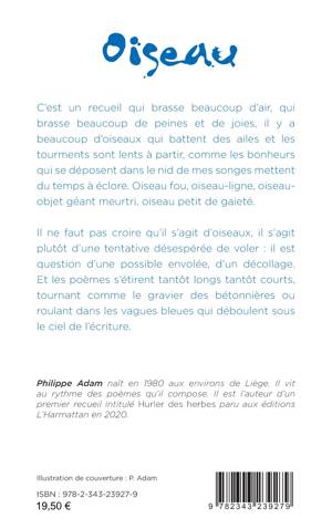 C’est un recueil qui brasse beaucoup d’air, qui brasse beaucoup de peines et de joies, il y a beaucoup d’oiseaux qui battent des ailes et les tourments sont lents à partir, comme les bonheurs qui se déposent dans le nid de mes songes mettent du temps à éclore. Oiseau fou, oiseau-ligne, oiseau-objet géant meurtri, oiseau petit de gaieté. Il ne faut pas croire qu’il s’agit d’oiseaux, il s’agit plutôt d’une tentative désespérée de voler : il est question d’une possible envolée, d’un décollage. Et les poèmes s’étirent tantôt longs tantôt courts, tournant comme le gravier des bétonnières ou roulant dans les vagues bleues qui déboulent sous le ciel de l’écriture.