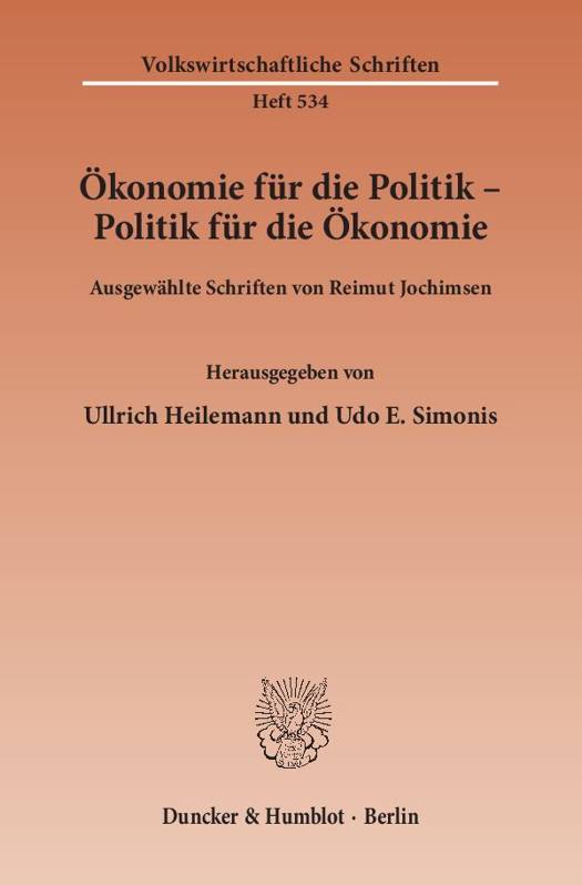 Als Reimut Jochimsen am 25. November 1999 im Alter von 66 Jahren starb, verlor Deutschland einen Politiker und Ökonomen, wie es ihn in dieser Verbindung nur selten hervorbringt. Auf beiden Feldern war er bereits in jungen Jahren ungewöhnlich erfolgreich, und auch später prägte er sie nachhaltig. Die vorliegende Auswahl verschiedener seiner Arbeiten will ihren Rang und ihre aktuelle Bedeutung dokumentieren.