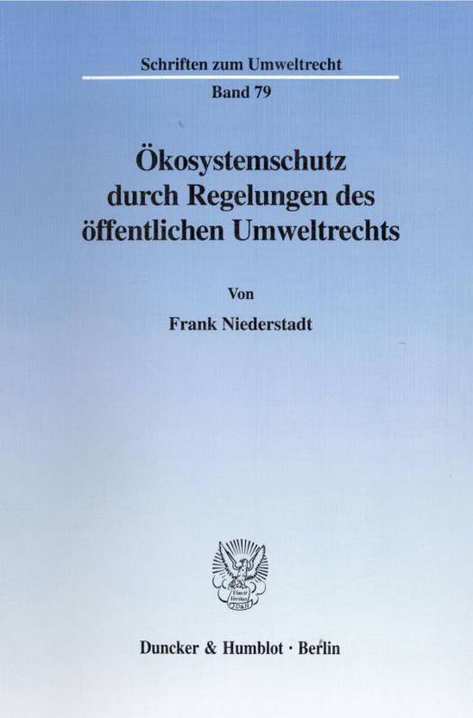 Strukturen und Funktionen von Ökosystemen sind seit Jahrzehnten in den Naturwissenschaften ein anerkannter Forschungsgegenstand. In der Konzeption des Rates von Sachverständigen für Umweltfragen für eine dauerhaft-umweltgerechte Entwicklung spielt der ökosystemare Ansatz eine wichtige Rolle. Umfassende Überlegungen zur Bedeutung des Ökosystemkonzepts für das Umweltrecht gab es jedoch bisher nicht. Die vorliegende Arbeit beschreibt die vorhandenen Ansätze und die Defizite bezüglich des Schutzes von Ökosystemen für wichtige Bereiche des deutschen Umweltrechts mit seinen europarechtlichen Bezügen. Der erste Teil befaßt sich mit den Grundlagen des ökosystemaren Ansatzes. Es wird das Konzept des Ökosystems erläutert, wie es in den Naturwissenschaften entwickelt wurde, ein Überblick über die Belastungsfaktoren gegeben, und es werden Schutzkonzepte vorgestellt. Der zweite Teil beschäftigt sich mit den vorhandenen Regelungen des öffentlichen Umweltrechts. Im dritten Teil werden Vorschläge und Überlegungen zur Fortentwicklung des deutschen Rechts dargestellt.