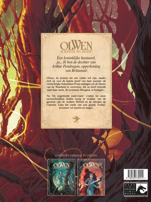 Olwen is de geheime dochter van koning Arthur. Olwen droomt ervan om ridder te worden. Toch zou ze moeten weten dat een jonkvrouw nooit tot ridder geslagen kan worden... Vastbesloten om te bewijzen wat ze waard is, stort de jonge krijgster zich op een queeste die de ridders van de Ronde Tafel waardig is. Een queeste die haar van het hof van Camelot naar het Gevaarlijk bos voert, op de grens van de Andere Wereld, waar ze gevaren en betoveringen het hoofd zal moeten bieden...