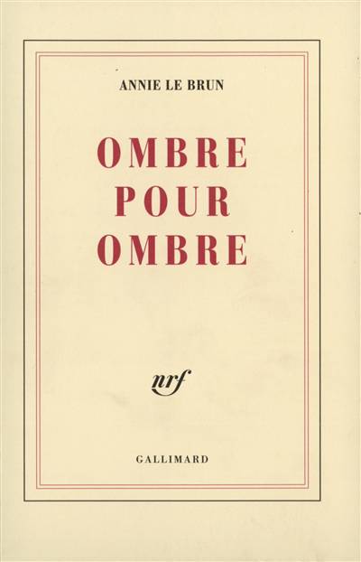 "Est-ce le fil du langage qui retient le cerf-volant de ce que nous sommes ou est-ce l'envol du cerf-volant qui donne au fil sa tension particulière ? Reste que quelque chose tient et emporte jusqu'à faire apparaître une forme qui n'est pas plus de l'autre que de moi. Mais sûrement en deçà de ce qui s'expose. Ombre pour ombre." Annie Le Brun.