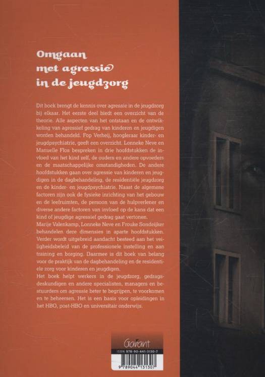 Dit boek brengt de kennis over agressie in de jeugdzorg bij elkaar. Het eerste deel biedt een overzicht van de theorie. Alle aspecten van het ontstaan en de ontwikkeling van agressief gedrag van kinderen en jeugdigen worden behandeld. Fop Verheij, hoogleraar kinder- en jeugdpsychiatrie, geeft een overzicht. Lonneke Neve en Manuelle Flos bespreken in drie hoofdstukken de invloed van het kind zelf, de ouders en andere opvoeders en de maatschappelijke omstandigheden. De andere hoofdstukken gaan over agressie van kinderen en jeugdigen in de dagbehandeling, de residentiële jeugdzorg en de kinder- en jeugdpsychiatrie. Naast de algemene factoren zijn ook de fysieke inrichting van het gebouw en de leefruimten, de persoon van de hulpverlener en diverse andere factoren van invloed op de kans dat een kind of jeugdige agressief gedrag gaat vertonen.