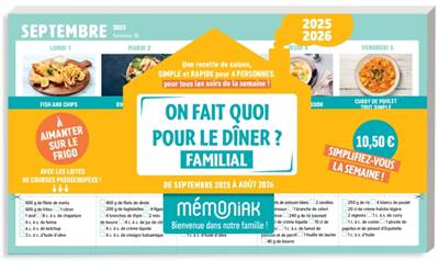 Les recettes sont simples et rapides pour 4 personnes, et de saison (car le bloc est millésimé de septembre 2025 à août 2026).